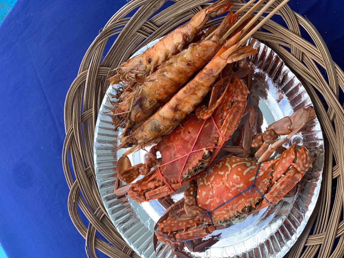 そして船の上で食べるBBQが最高に美味しく、豚肉、海鮮(えび、カニ、イカ)、フルーツには激甘なパイナップルとマンゴーまで!絶品ですよ!!