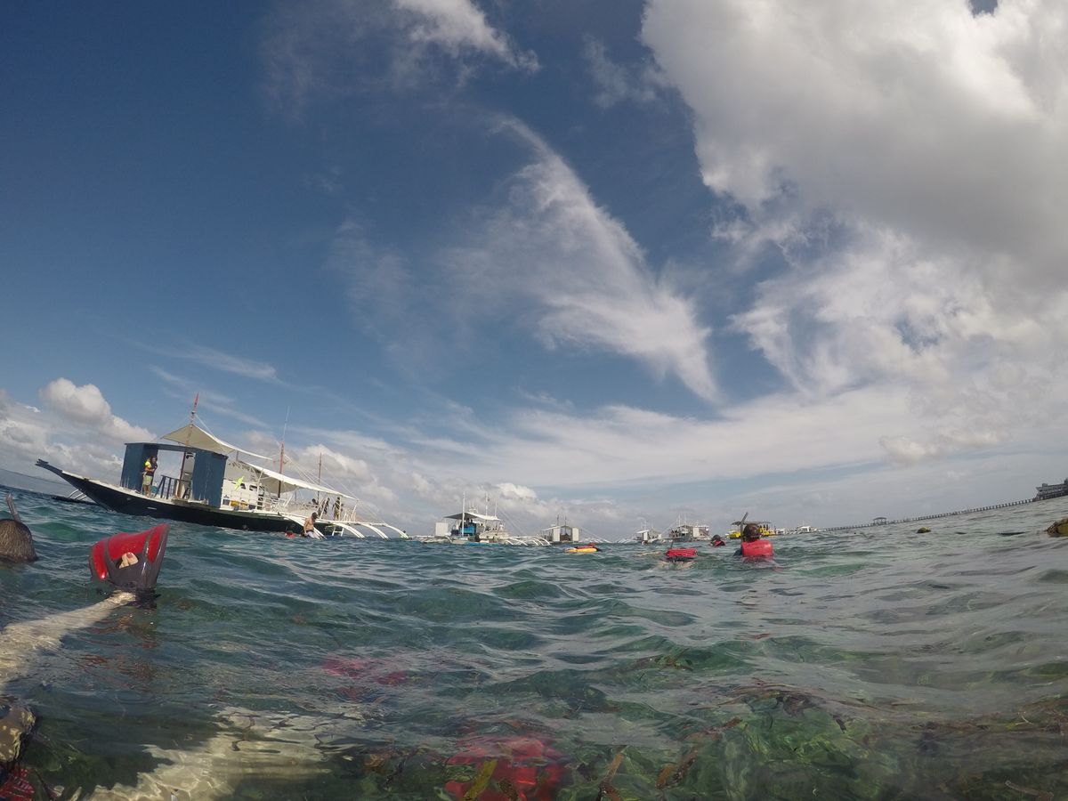 また、このエリアの海の色はグリーンで、写真とは違います。水中のゴミも多く、魚の種類はそんなに多くありません。(普段スキューバダイビングをしているので、それと比べてしまいます)もし透明度の高い海が見たいならそもそもこのエリアのシュノーケルはおススメしません!フィリピンの中でもコロン島、シアルガル島など他の島に行きましょう。