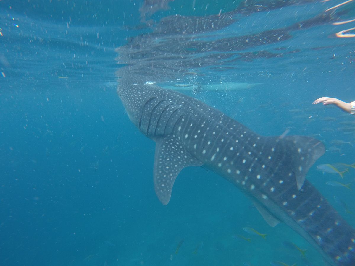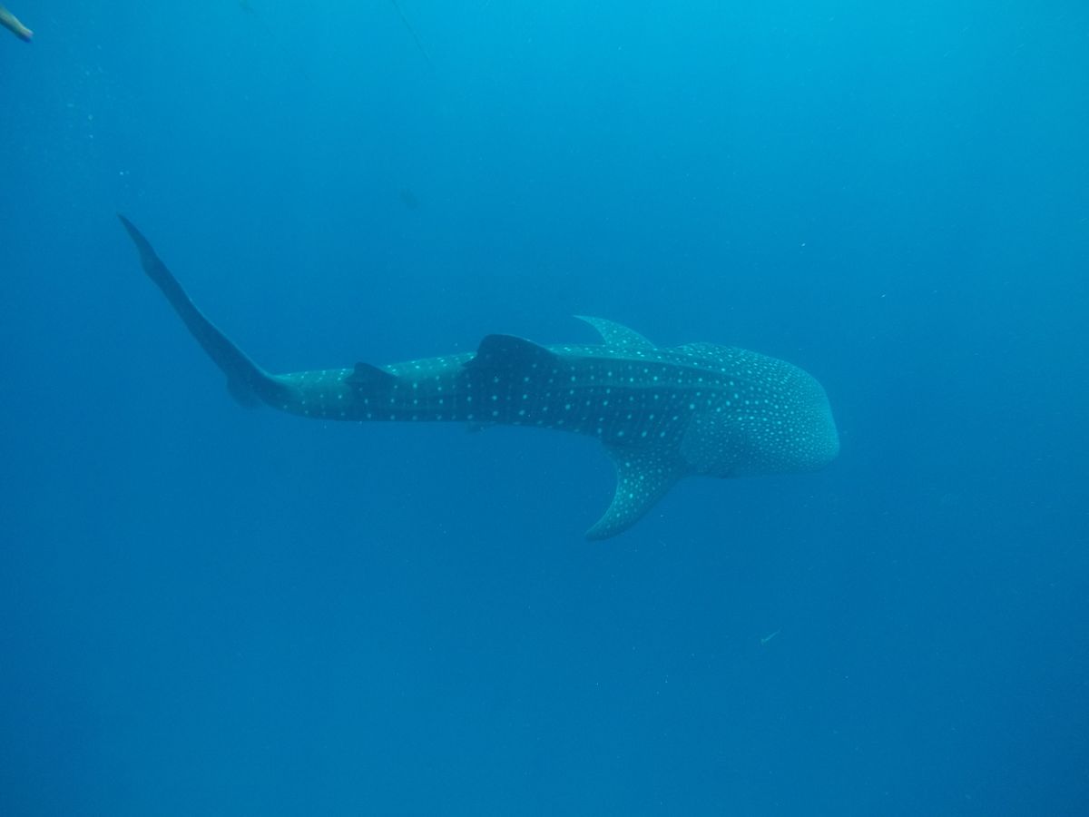 ジンベエザメは想像していたよりはるかに大きく、大迫力でした。サメというよりクジラと一緒に泳いでいる感じ。
