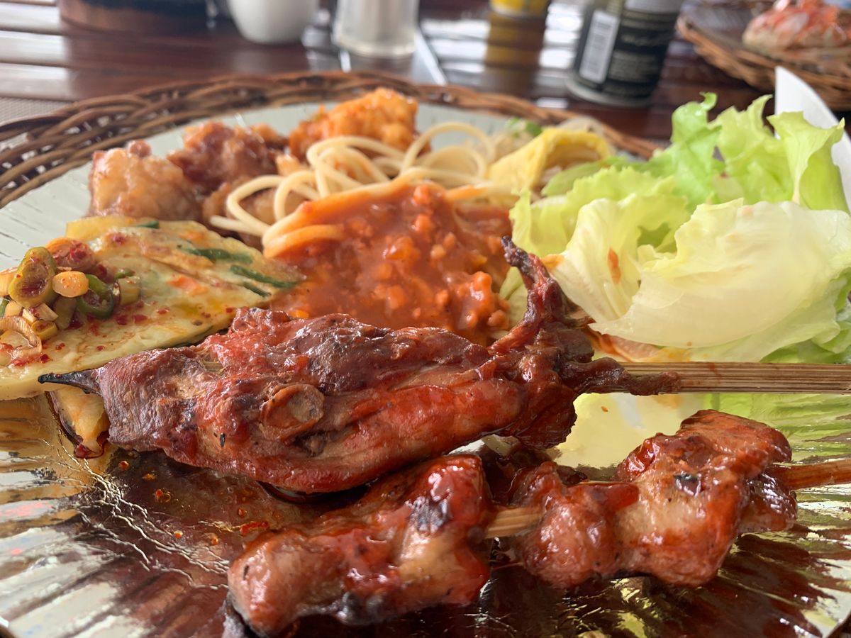 昼飯はバイキングで、たくさん種類はありましたが、味は普通でした。ただ、海のすぐそばで食べるご飯は、とても雰囲気が良かったです。