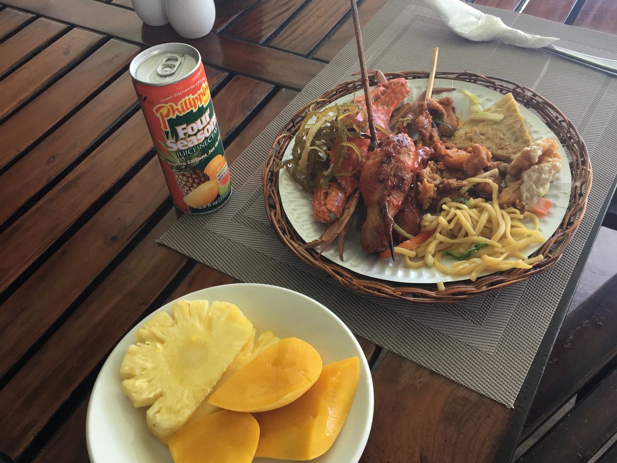 食事も海を見ながら、マンゴーやフィリピン風の焼き鳥にシーフードが美味しかったです。