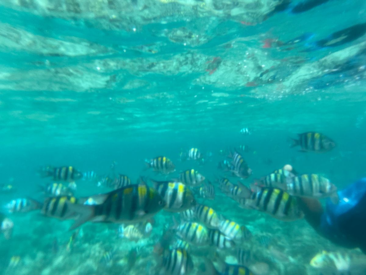 天気に恵まれ海もとても綺麗で魚もすごく多く、まるで水族館の中を潜った様でいつまでも遊んでいられるようでした。