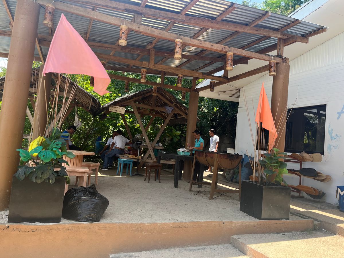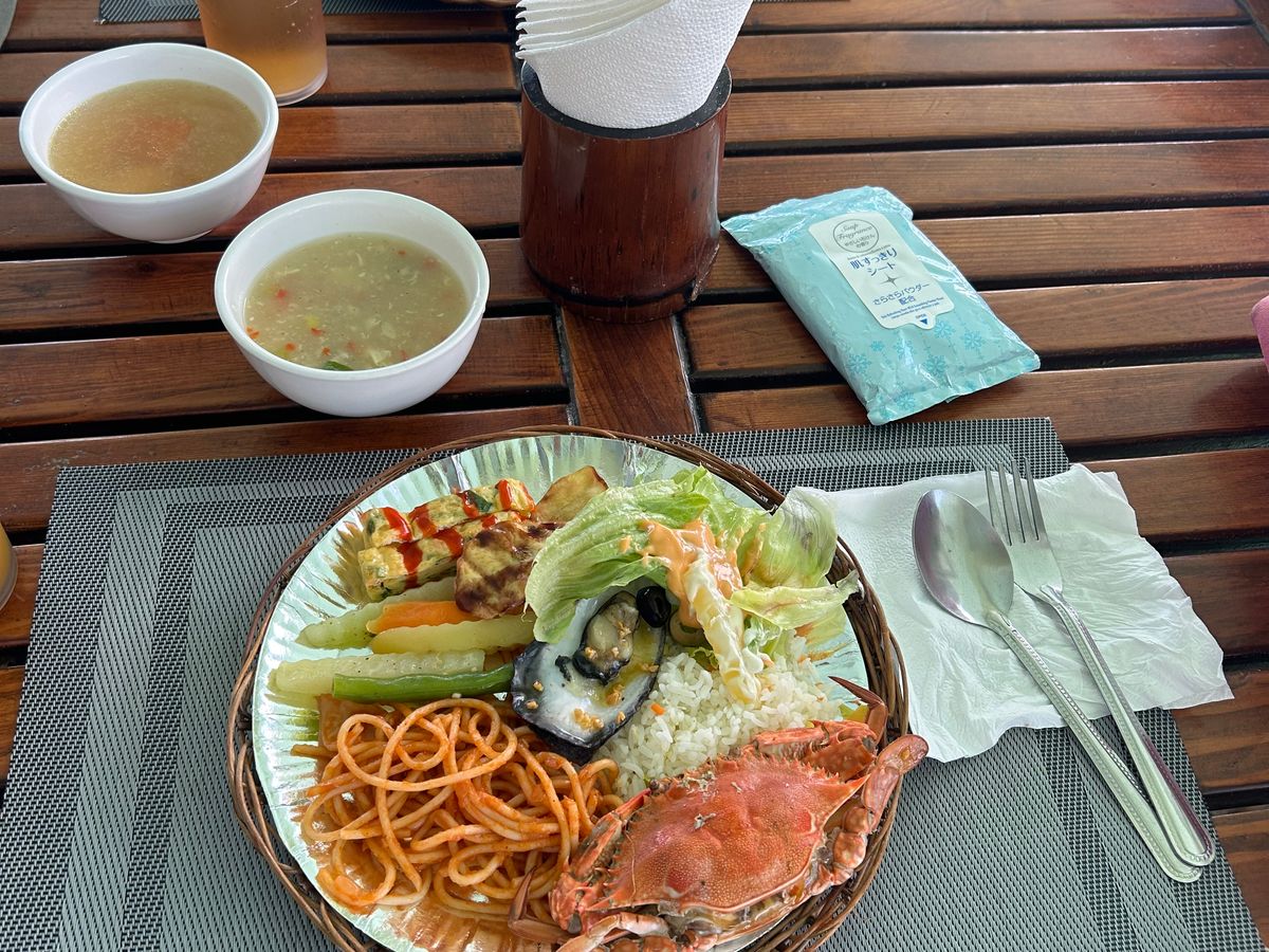川と海と繋がっているところにあるレストランでランチタイム。味は、、、、。。人それぞれ好みがあると思いますので割愛しますが、お米はパサパサ、春巻きは油臭く、焼きそばは油っぽく、串は硬く、チキンと串は同じ味付けでした。(レストランには野良犬が5匹いて、子犬がまとわりついてきたのが可愛かったですが、犬嫌いの方はしんどいかもしれません。)