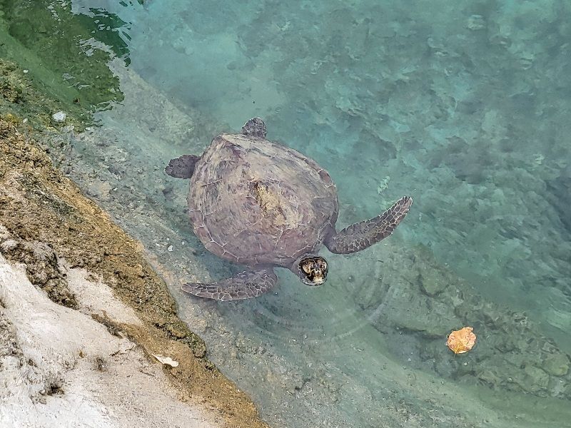 透明度はまあまあで、人が集まってるところに行くと小さなお魚もいました。途中で雨が降ってきたので、海も濁り波が高くなり泳ぎに自信のない娘には浮き輪を持ち込んでも良かったかなと思いました。自分の水中メガネとスノーケルセットは持ち込んでいたので、お魚とかみて泳ぎたい方は持って行くほうが良いです。(ジンベイザメのところは貸し出しがありますが、こちらはなし。)