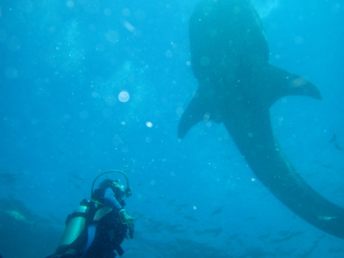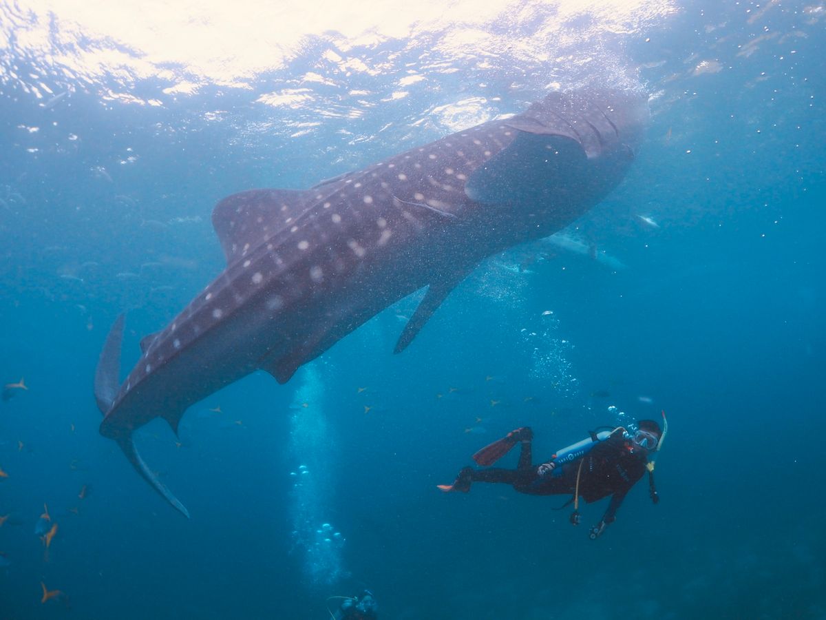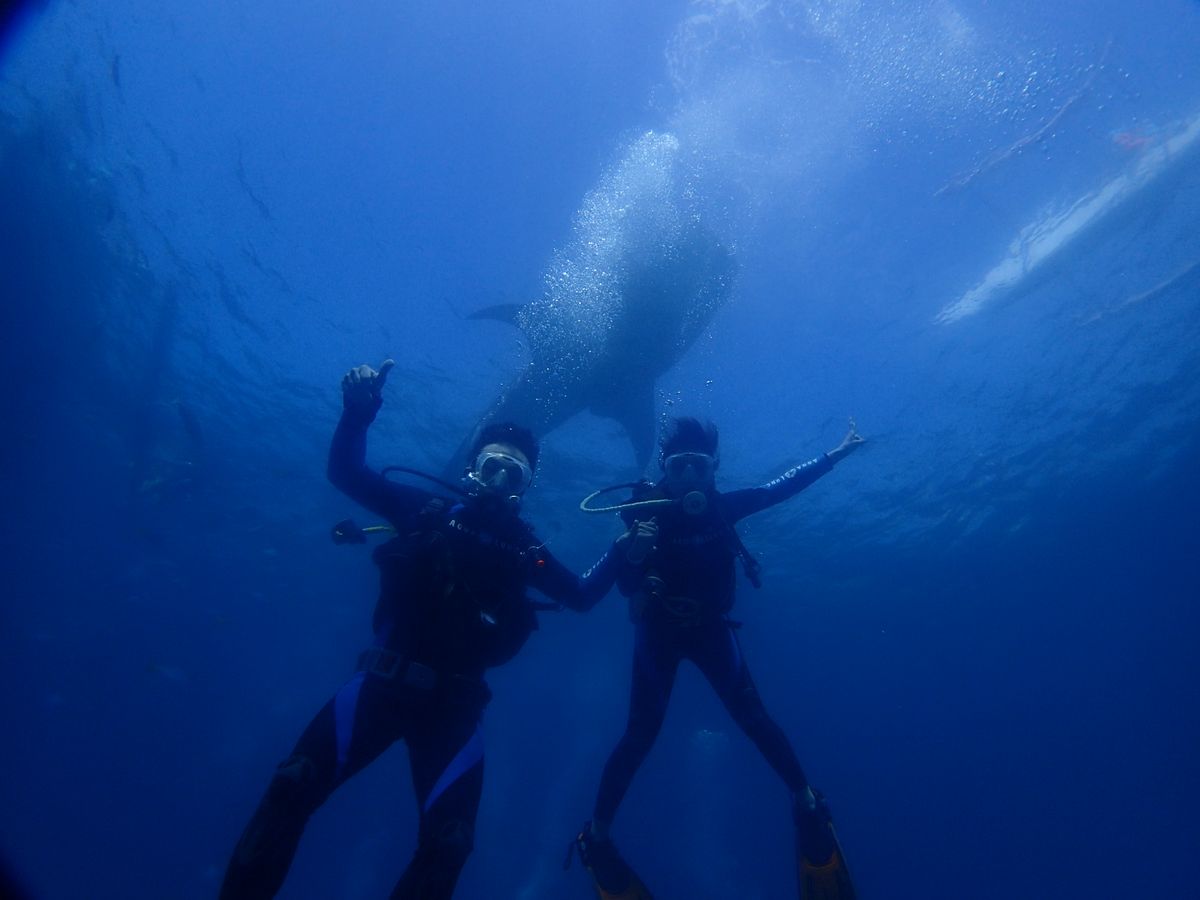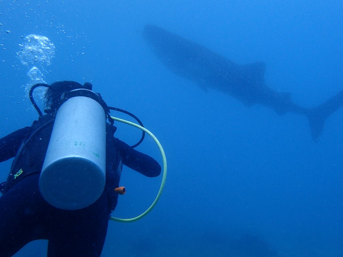 このツアーを選んだ理由は、夢だったジンベエザメと泳ぐことができ、他のポイントでもダイビングができること。ツマログの滝にも立ち寄れ、しかもマンゴーが食べ放題という盛りだくさんの内容にひかれたからです。最初、ジンベエザメとシュノーケリングで泳ぐのか、ダイビングで泳ぐのか、悩みに悩みましたが、「ジンベエザメの全体的なフォルムが見たい!」ということでダイビングに決めました。結果、沢山のジンベエザメを間近で見ることができ、水面をコバンザメを引き連れて悠々と泳いでる姿を下から見上げるという貴重な体験もできました。下から見るジンベエザメは圧巻で、シュノーケリングでは味わうことはできないと思います。私はダイビングにして良かったです。