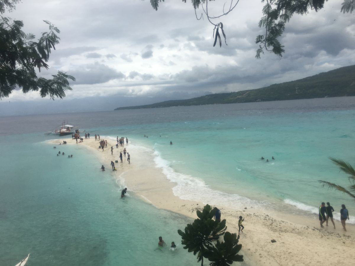 二本目はギンガメアジがいるスポットを潜るはずが、海流が強いとの事でスミロン島でのダイビングに変更。次のスポットに移動中にマンゴーとバナナが出てきます。船上で食べるマンゴーは最高でした!途中、スミロン島のサンドバーに10分ぐらい上陸し、(ガイドさんが写真を撮ってくれます)ボートに戻り二本目スタート。きれいなサンゴ、沢山の魚がいて、イワシ?の魚群にも遭遇でき、大満足でした。陸に戻り、シャワー(水流は超弱め)を浴び、着替えて、フィリピン料理のランチ。休憩後ツマログの滝へ向かいます。おまけ程度だろうとあまり期待はしていませんでしたが、滝は神秘的で思わぬご褒美でした。ノエルさんにいっぱい写真を撮ってもらいホテルへ向かいます。帰りは終始爆睡でした(笑)ノエルさんにまぬけな寝顔写真まで撮られました(笑)