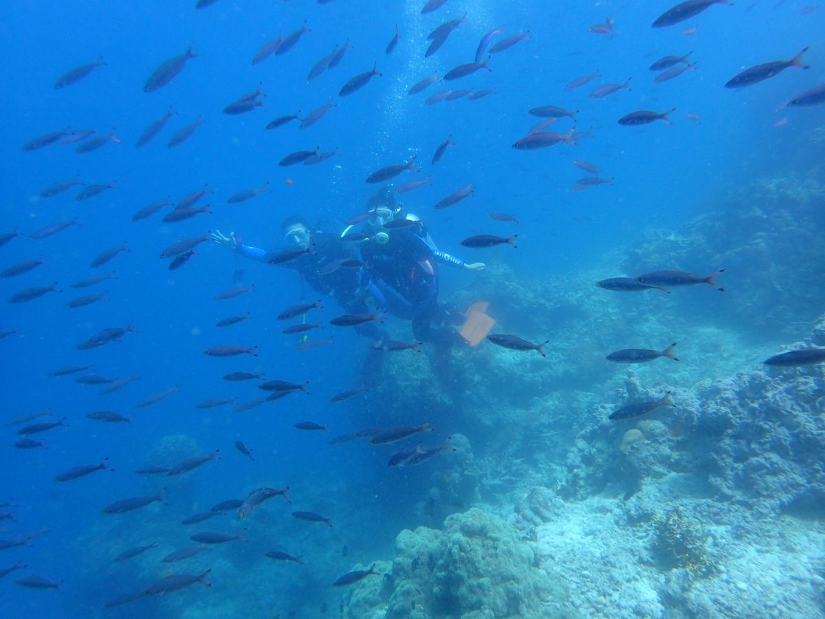 シュノーケルも餌付けがかわいいですが、やっぱりここはダイビングライセンスを活かす絶好の機会だったと思います。