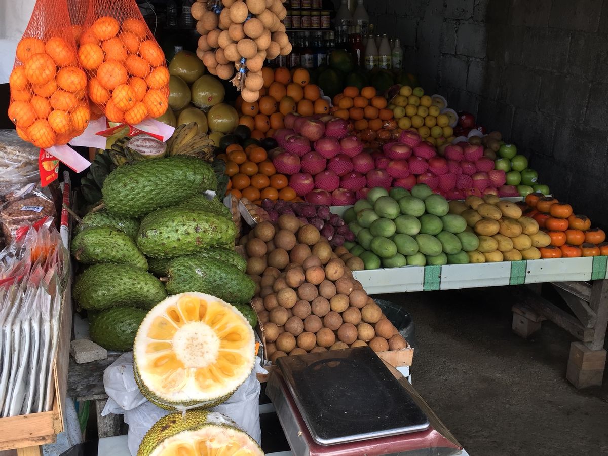 タガイタイに並んでいる露天でガイドさんがモンキーバナナとカットしたパイナップルを買ってみんなに分けてくれました。