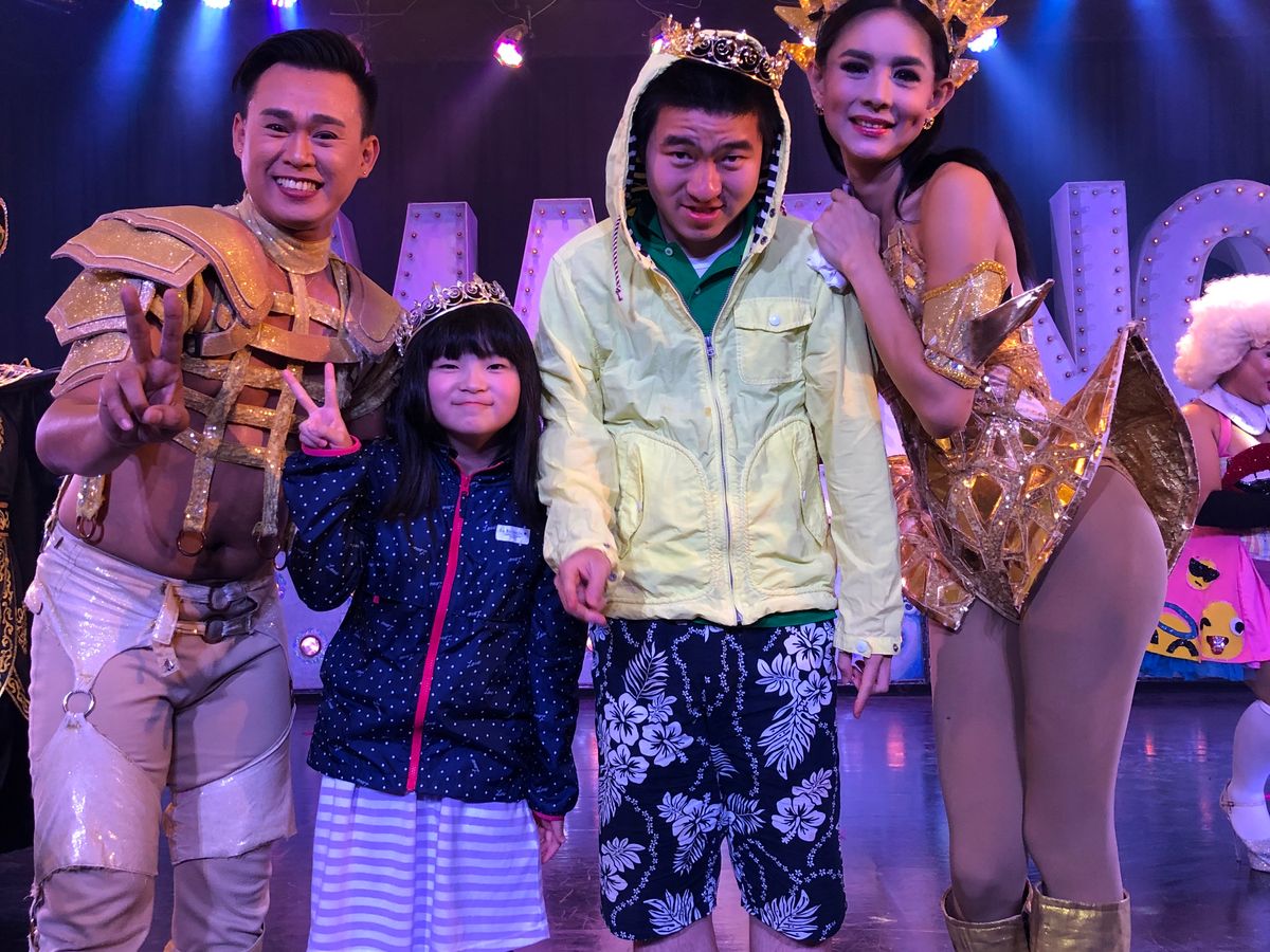 ニューハーフショーはきらびやかな舞台で、子供も楽しめる健全なショー、笑いもあり、楽しかった。