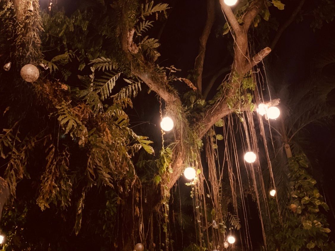 南国の雰囲気溢れる店内は、夜になるとライトアップされるのも魅力的ですよね。
