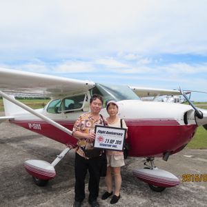 子供4人を二人づつ2回に分けて体験しました。上空で子供を交代させ二人とも運転できるようになる段取りでした。が、1台のセスナで2往復するというもので、1台目が帰ってきた時点で雨が降り出しましたが子供も楽しみにしていた為、待機することになりました。長雨で随分まちました。1台目に乗ってた子供二人と父は先にホテルへ帰り待機。乗れて操縦できたことは喜んでいたんですが、短い滞在期間の中でかなり時間を費やしてしましい、その点は非常に残念です。せっかくの泳ぐ時間がなくなってしまったからです。おまけに二人の内一人は完全に酔ってしまい、飛行中顔をあげることも出来ませんでした。酔いやすい子はやめたほうがいいです。ですが、同乗パイロットの方はとても親切で安心してまかせられました。なんとか体験させてあげようという気持ちが伝わってきてとてもうれしかったです。