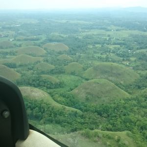 最初は操作感覚が分からず旋回し過ぎたり、高度が上がり過ぎたりしましたが、櫻井さんのサポートもあり徐々に慣れて来て景色を見る余裕も出てきました。上空からは宿泊しているホテルやキレイなサンゴ礁群とボホール島の名所、チョコレートヒルズの上空を飛行して行き、途中櫻井さんのアクロバット飛行も大大大興奮で体験し、再びマクタン空港へ戻り着陸態勢へ。