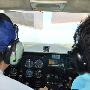 15時の時点で天気は良好、フライト可能という事で、早速セスナに乗り込んで操縦の説明を受けました。飛行機好きですが携帯のフライトシュミレーターのゲームぐらいしかした事ないため本物の計器類を見てさらに興奮してしまいました。男の夢が詰まっている空間でした。