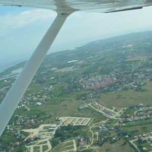 先日息子(4歳)と共に体験操縦に参加しました!私自身昔に飛行機のパイロットになりたかった事も有り、旅行に出かけると機会があると操縦したいと思っておりました。初めて飛行機の操縦をしたのはかれこれ20年前にロサンゼルスの夜間遊覧飛行の際にパイロットさんがちょっと操縦してみるかい?と言ってくれて、上空で操縦をさせてもらえたときでした。そのときの楽しさが忘れられす、また操縦したいと思ってかれこれ20年が経っていました。それが、今回セブで実現!それも離着陸もさせて頂けるという本当の体験操縦!飛ばない訳にはいけませんね〜!子供も操縦できるプランがあったので息子に操縦してみるかい?と聞いたところ、顔を横にプルプル・・・なんともったいない・・・という事で私父が操縦する事になりました〜!まあ息子が操縦すると言ったら最初は息子に操縦体験してもらってその後に私も別に体験操縦するつもりでした。そんなこんなで息子を後部座席に私は右側の操縦席、もちろんプロのパイロットさんが左側の操縦席に座って下さって出発〜!セスナは地上走行時は足のペダルで左右への方向転換とブレーキをするのですがこれがなかなか難しく、ついつい操縦桿に手が・・・なんとか滑走路に到着し、テイクオフ!ジェット機に無いふわっと離陸する感じも良いですね〜!パイロットさんの指示に従いながら高度を保ち一路ボホール島へ!セブ近海の珊瑚礁と島々に見とれながらボホール島チョコレートヒルズへ到着〜上空から見るとまた格別ですね〜ここで旋回し岐路に。セブ空港が混雑しておりマクタン島東海岸で3回大きく旋回待機してさあランディングへ!機体をまっすぐ維持しながら機首を調整しなんとか無事着陸〜(もちろんパイロットさんのアシスト付きでした)。緊張の中にも楽しさ一杯の体験操縦素晴らしいの一言でした〜!