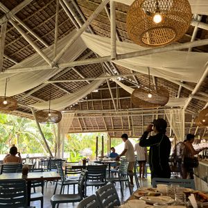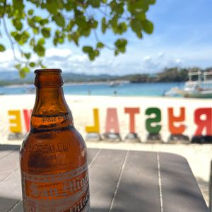 ランチは海上レストランで、エメラルドグリーンの海を眺めながらフィリピンのローカルフードをビュッフェ形式で楽しめます。冷えたビールも購入でき、火照った体に最高のリフレッシュ!