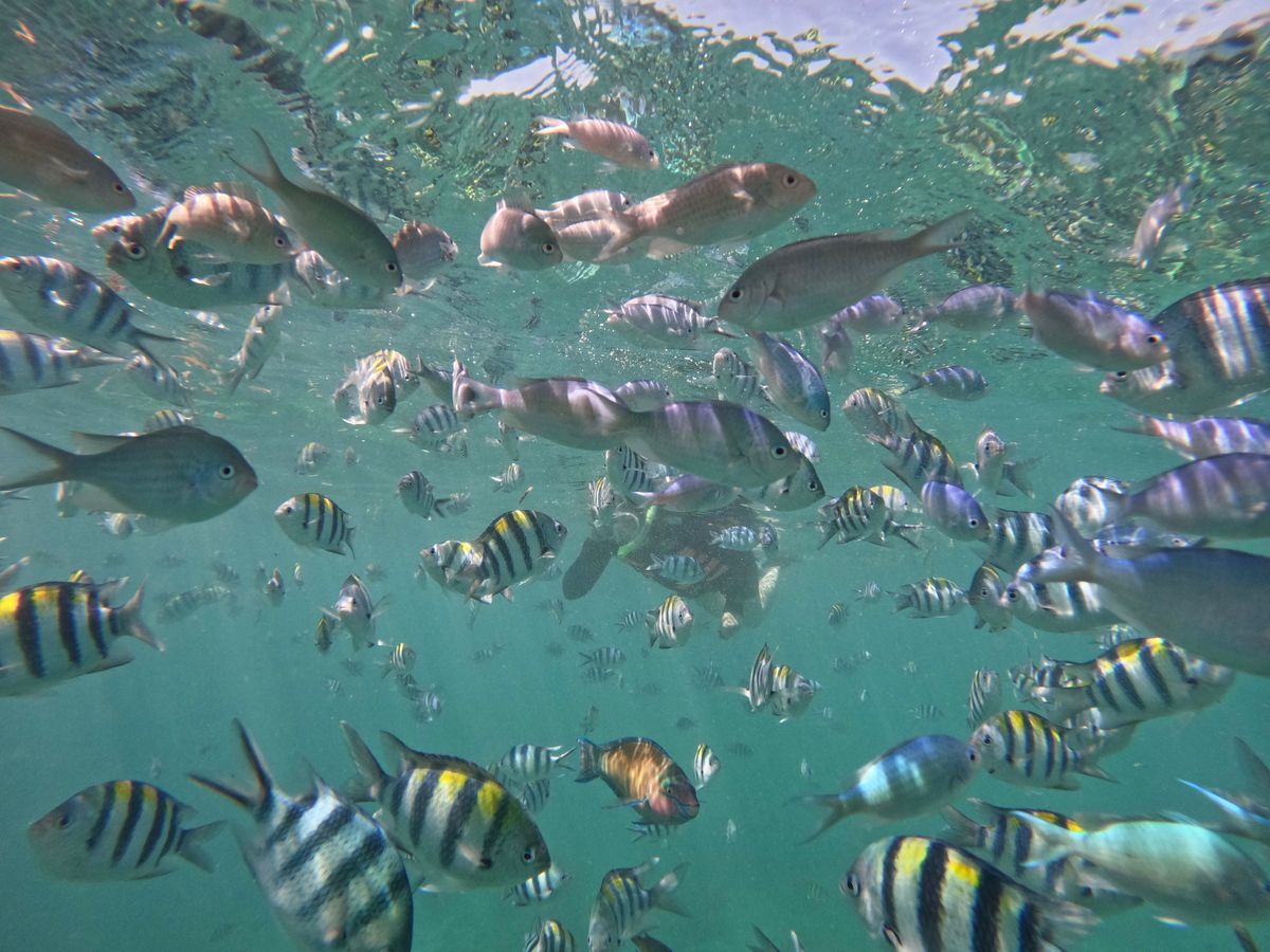 軽く散歩してシュノーケルしました。こちらは大人が足が着くような深さでしたがお魚は沢山いて楽しかったです。確かこの時はパンは配ってなかったので、餌付けしたい方は持参されるといいと思います。