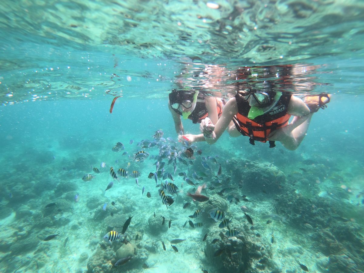 ヒルトゥガン島で魚の餌のパンを貰い、シュノーケリング。たくさんの魚がいて、とても綺麗でした!