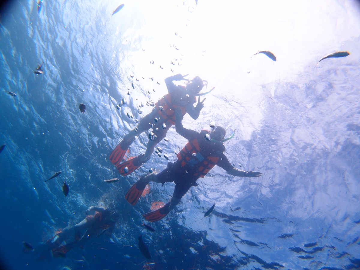 小雨からの出発で、どうなることかと思いましたが、スタッフの方々が盛り上げてくれ、参加者を上手にまとめてくれたおかげで、大変楽しく過ごせました。海中は魚も多く、綺麗でした。