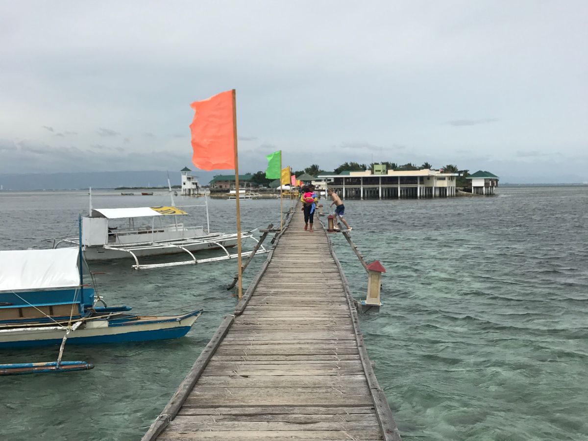 楽しみにしていたアイランドホッピング、私達の旅行では珍しく雨に降られましたが朝ジープニー(地元の人の足である乗り合い軽トラ)でガイドさんがホテルに迎えに来て港の事務へ、雨なのでノーペナでキャンセルOKでしたが雨の止むのを信じて雨天決行、ツアーの説明を受けてからバンカーボートに乗り込み出発、30分ほどでサンゴ保護区のヒルトゥガンリゾート沖に到着、案の定雨も止みライフジャケット着用して餌のパンを持ってシュノーケリング、雨上がりなのに透明度抜群で水深4~5mのサンゴや魚達がクッキリ見え感動しました。40分程魚達と遊んだあと移動してナルスアンリゾートにてまずは水上レストランでランチBBQ(質量ともに過去最高でした!)食後リゾートを散策してから桟橋下のシュノーケリングポイントでペットボトル入りの餌をもらって入水、皆が餌をあげるので魚で前が見えなくなるくらいでした。リゾートで2時間程の楽しい時間を過ごした後帰路へ、雨天決行して良かった!絶対外せないアイランドホッピングです。