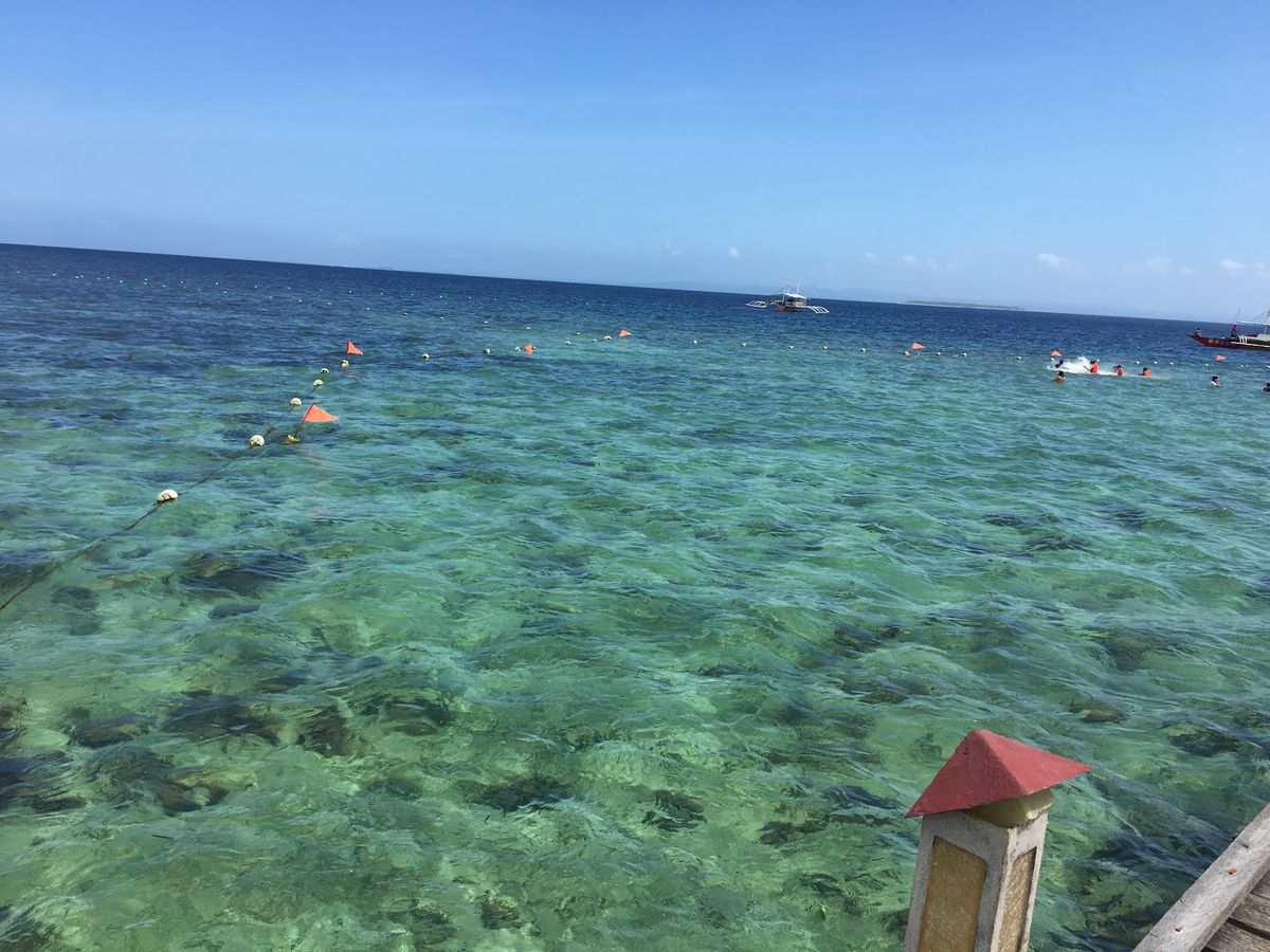 天候も良く海の色はエメラルドグリーンからブルーに変わり透明度も抜群で,セブ島に来て一番の海だ‼