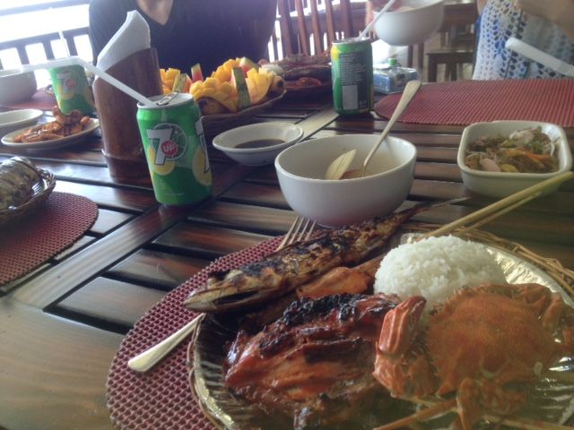 お昼ご飯はナルスアン島にて食べました。シーフードもお肉も果物もあり、どれも美味しかったです。