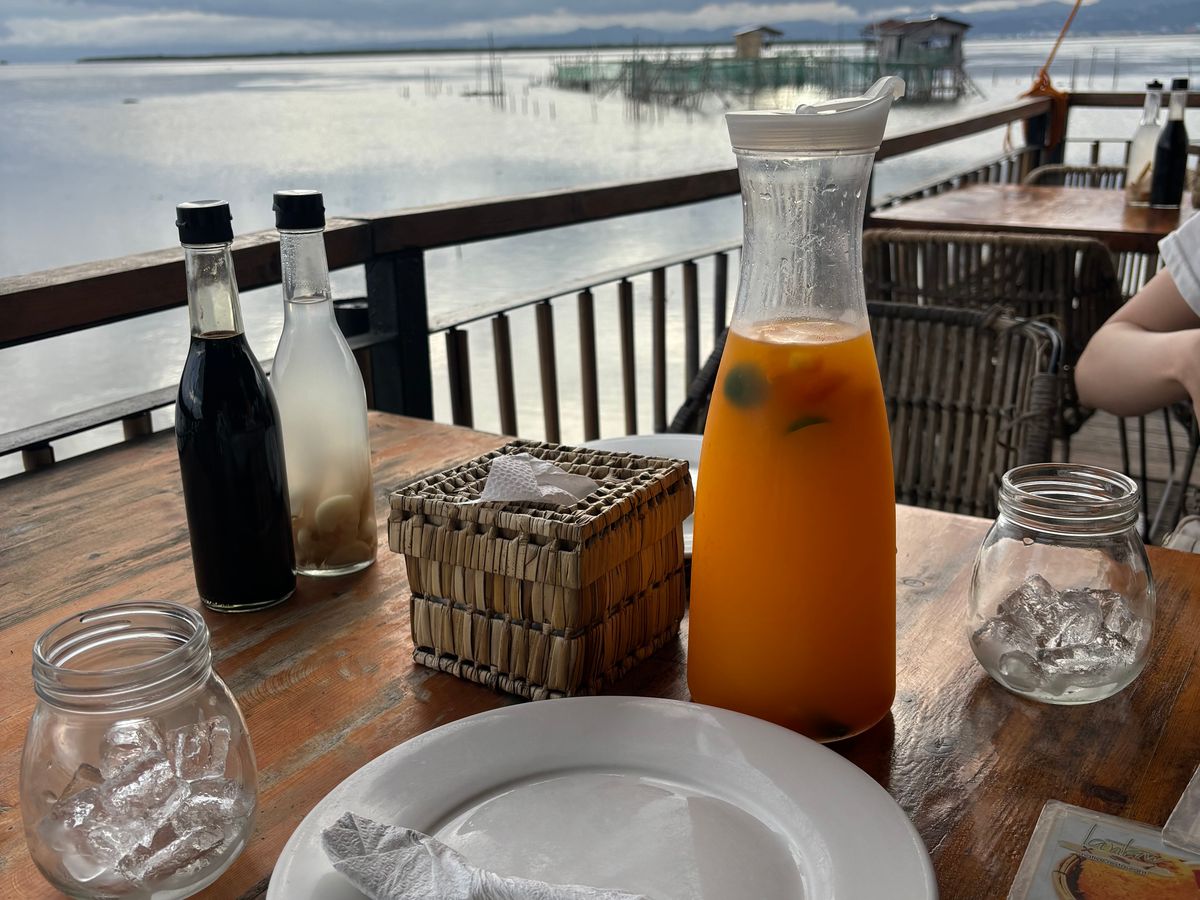 まさにシーサイドレストランいいロケーションです。ただ、レストラン周りの海はエメラルドグリーンの海ではありません、生活排水が海に流れればこんな色と思っておきましょう。