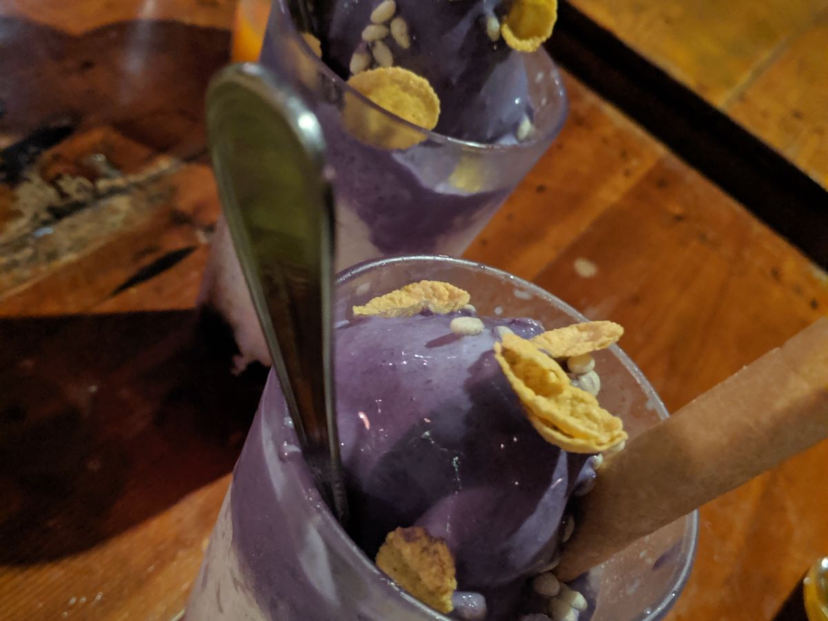 予約したのはコース料理。一般的なフィリピン料理が全部同時に料理が出てくる。アイスパフェやスイートパイまで。溶けて美味しくないし、デザートは最後に出さないと。習慣の違い?????