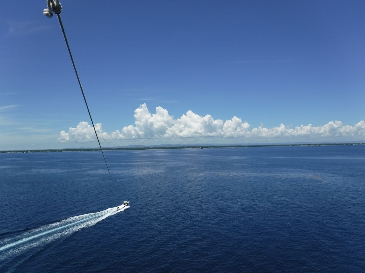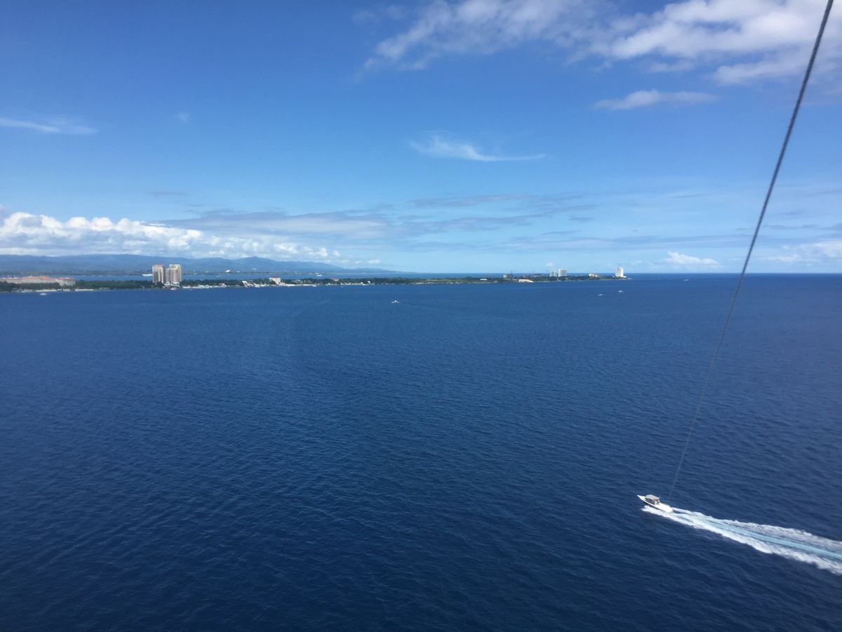 船には他に二組の日本人が乗っていて私たちと合わせて6人、スタッフの方3人と乗っていましたが広々としていて快適でした。パラセーリングの順番は私たちが一番最後だったので他の方がやっている間早くやりたくてそわそわしていました。いざ順番になりパラセーリングを実際にやってみるとこんなに高く上がるのかという程上空高くまで上昇し、セブ島の市内のほうまで見渡すことが出来絶景でした。晴天に恵まれればすごく気持ちのいい空中散歩を味わえ、セブの綺麗な島々や景色を手軽に楽しむことができるので是非セブに来た際はやった方がよいと思います。