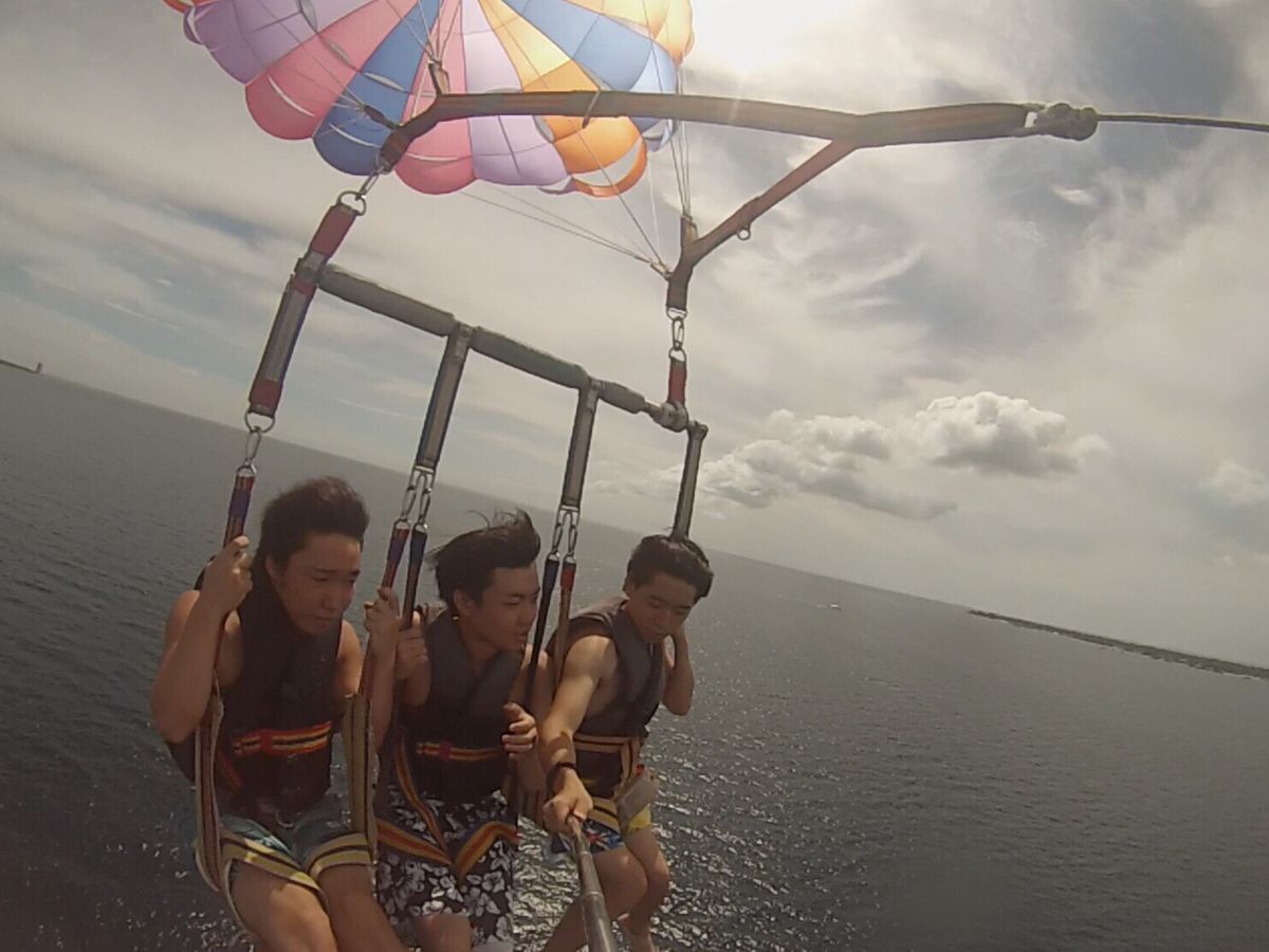 僕たちは今回8人でスタンダードフライトに申し込みました。現地につき受付をしました。日本人スタッフもたくさんいてパラセーリングの説明も日本語で安心して聞けました。みんなで船に乗り沖のほうへと向かいました。今回は8人だったので3、3、2でわかれてやりました。船を運転してくれる現地の人やインストラクターの人がとても明るい方で少し日本語も話せてとても楽しかったです。どの位高いのか、など初めてのことで未知数なことが多く不安もありましたが、そんな気持ちはどっかへ行きました。怖さは少しも感じず、ただただきれいな海と絶景に感動しました。しかし下を見ると思っていたよりも高さがありました。でも怖さよりも楽しさが勝り、とてもよかったです。はじめから最後まで楽しさが強く何度でもできると思いました。現地の方の優しさや、日本人スタッフがいて日本語が通じる安心感ととても最高でした。帰ってきてタオルも無料で借りれてシャワーで潮のべたべたもすっきりして帰りました。とにかく最高でした。