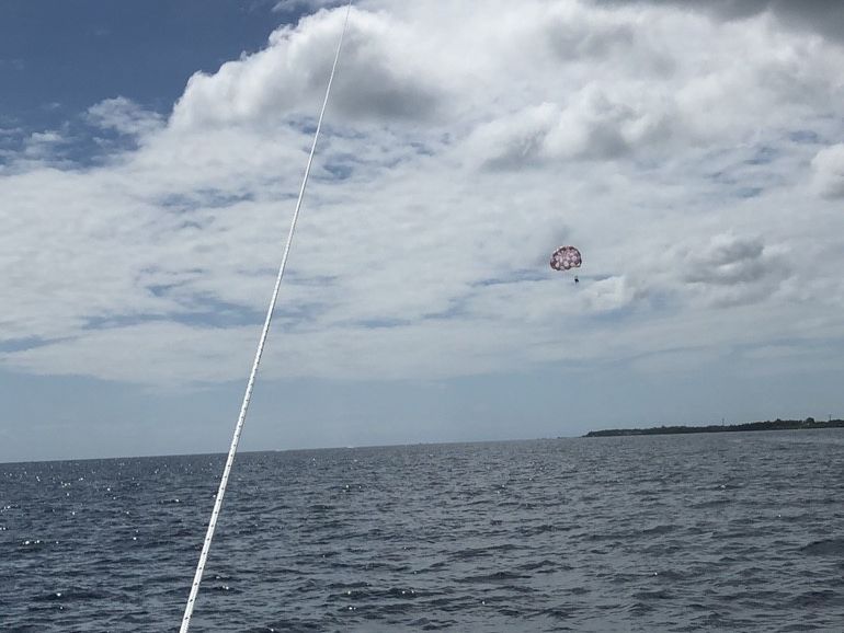同じシャングリラの午後体験ダイビングの後に、そのままこちらのパラセイリングに参加しました。