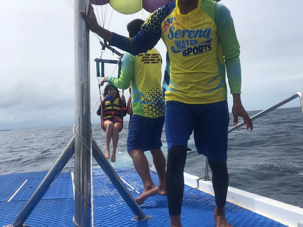 初めてのパラセーリングでしたが、スタッフの方も親切に対応して頂いて安心しました。食べ物をゆっくり食べる程の時間はありませんでしたが、雰囲気はとても良かったです。写真もたくさん撮ってくれて思い出に残せました。天気があまり良くなく、曇りだったので夕日が見れずそこだけは残念!あとホテルのプールやビーチがあったのですが、宿泊者のみの利用だったので一緒に利用できると尚良かったのかなーと!またセブに行くときは他のアクティビティも利用したいです。