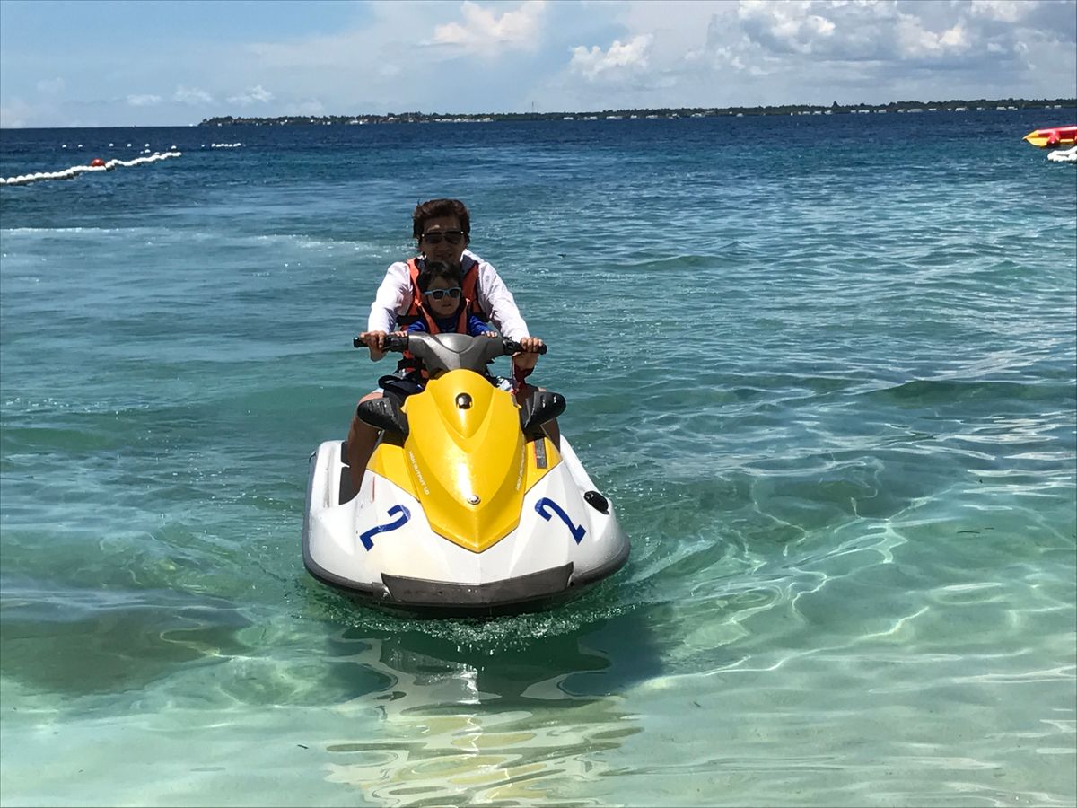 現地のホテルから21時過ぎにVELTRAを通じて予約リクエストをしたら、10分後のすぐに予約OKのメールが届き、ホテルの電話にも予約OKの電話までいただけました(日本語で現地スタッフより)素晴らしいクイックな対応はさすがですね!!当日は、スムーズなピックアップと送迎に、シャングリラ内での各スタッフの丁寧な対応ととても気持ちよかったです。特に現地の方々の元気な対応を笑顔は良いですね☆2人で1台を借りて運転は1人だけだったので、料金はそれぞれ1台ずつ借りて運転するよりも半分ですみました。自分で運転できるのでプライベート感もありとても楽しい時間が過ごせました!本当にどこまでもどこまでも進んで行けると言う感覚で30分間ジェットスキーを楽しめました♪楽しい時間をありがとうございました!ロッカーもありますので荷物は置けます(貴重品はホテルにおいてタオルや着替えなど最小限で行きましょう)シャワーもありますので遊んだ後は着替えられます。ジェットスキーの場所まで歩く途中のプライベートビーチはとても綺麗でした☆コストパフォーマンスの高い有意義な時間が過ごせました♪