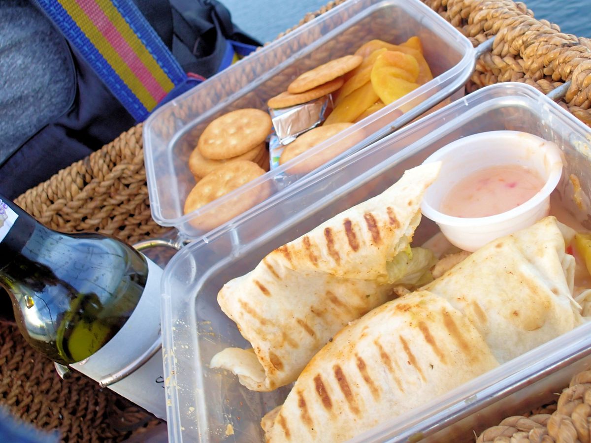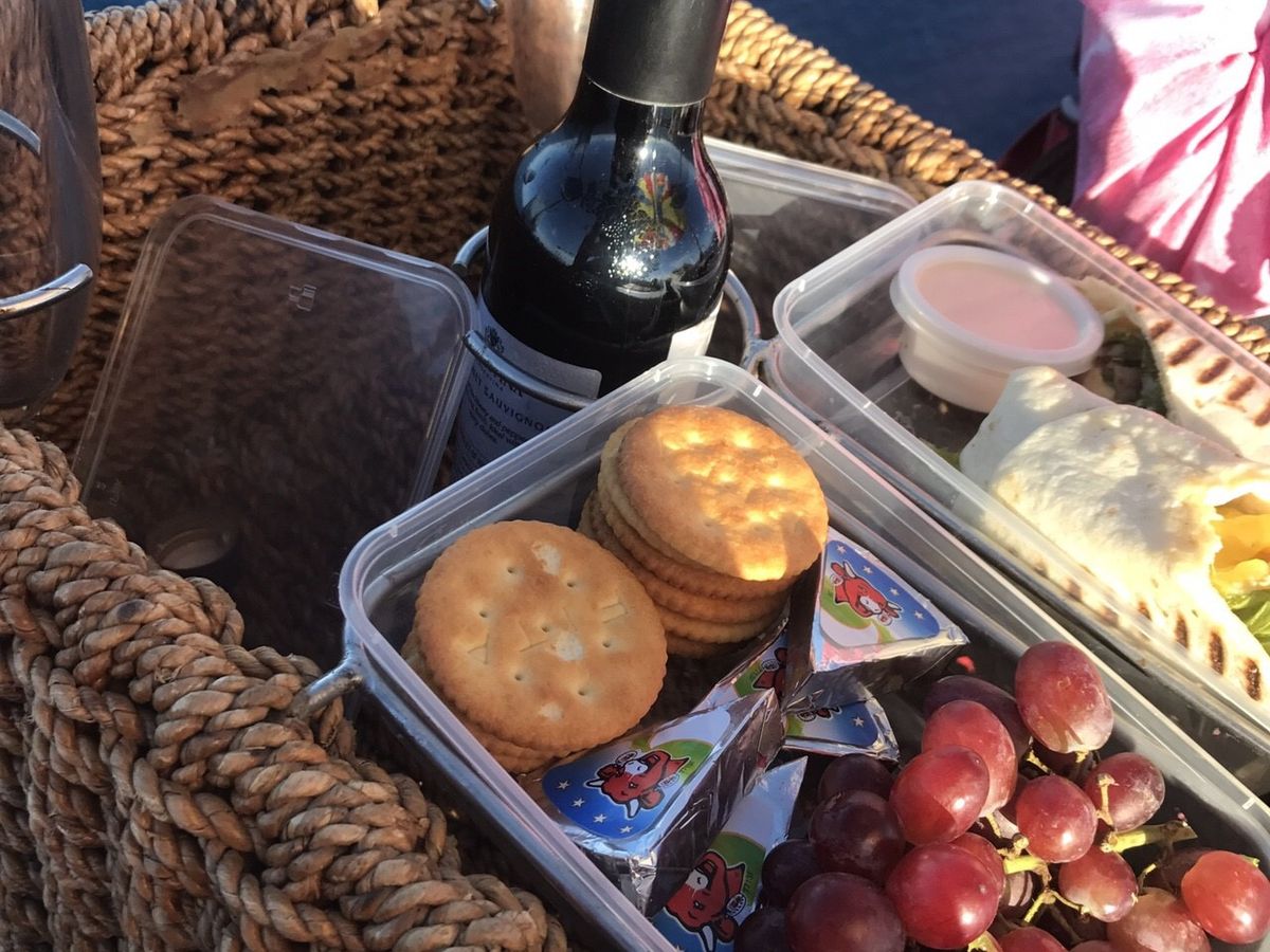 軽食の内容はワインボトル、サンドイッチとフルーツでした。そこそこのボリュームだったので、飛んでいる間に完食できませんでしたが、後で持ち帰り用に紙袋に入れてくれました。