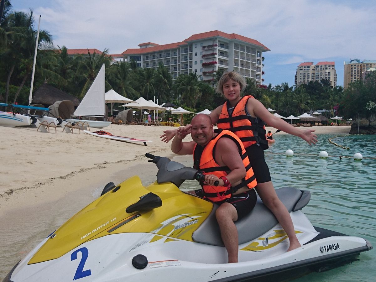 昨年のグアムに引き続き、セブでもジェットスキーを体験しました。時間内はほぼフリーで、戻りの時間も結構アバウトな感じで楽しめます。1人乗りよりも二人乗りが楽しいのでオススメです!ひとつだけ残念だったのが、海にペットボトルやビニール袋や木材などのゴミが結構浮いていた事です。潜れば綺麗なんだけど...
