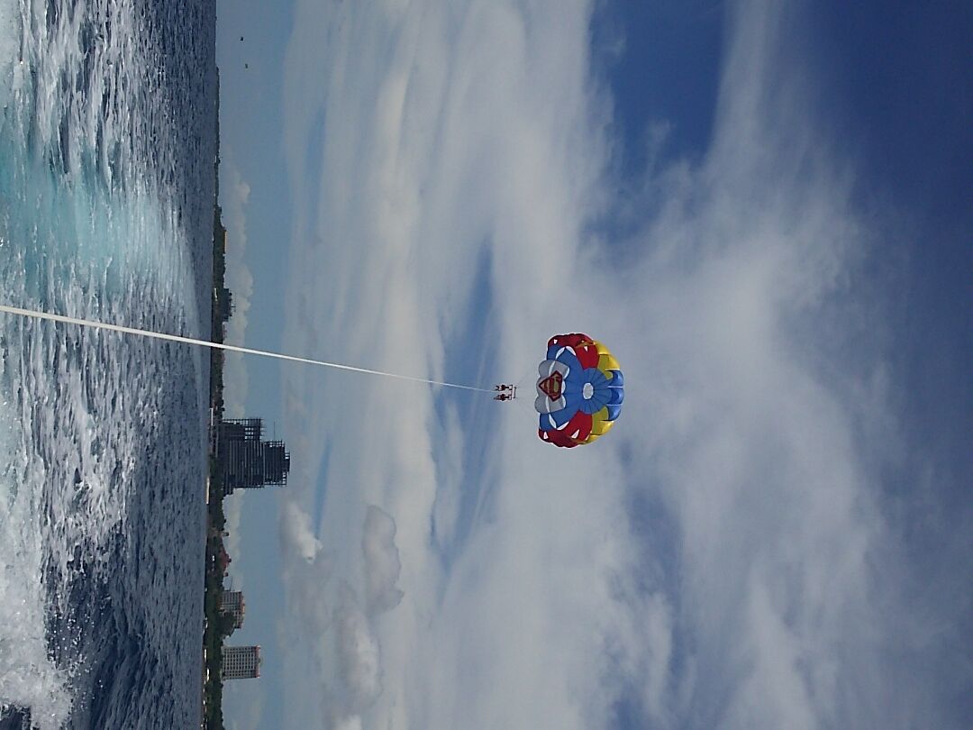 初めてのパラセイリングで最初は少し不安がありましたが、体験してみるとあっという間に空と海の間から最高の景色が広がりました!天気もよく、まさに絶景です。現地には日本人スタッフの方が案内や説明をしてくれて分かりやすく、またパラセイリングの際も着陸の際にしっかりスタッフの方が受け止めてくれたので怪我などの心配も無く体験を終えることができました。また、送迎がついていたのでとても助かりました。手荷物は受付で預かってくれるので身一つでパラセイリングを楽しむ事ができてとても良いサービスだと思いました!また、写真を撮影できるか心配でしたが、パラセイリングの紐やベルトがしっかりしていたので良い写真がたくさん撮れて満足です!海のアクティビティとして、絶対オススメです!