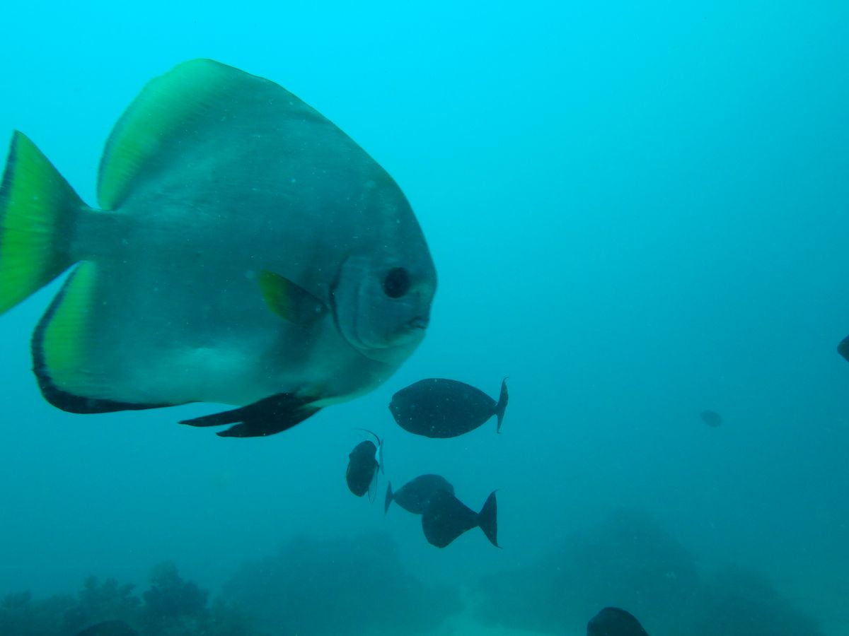 もちろん、海もキレイ&魚もたくさん。ロウニンアジやツバメウオの群れにも出会えました。