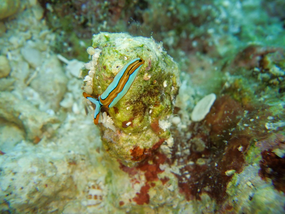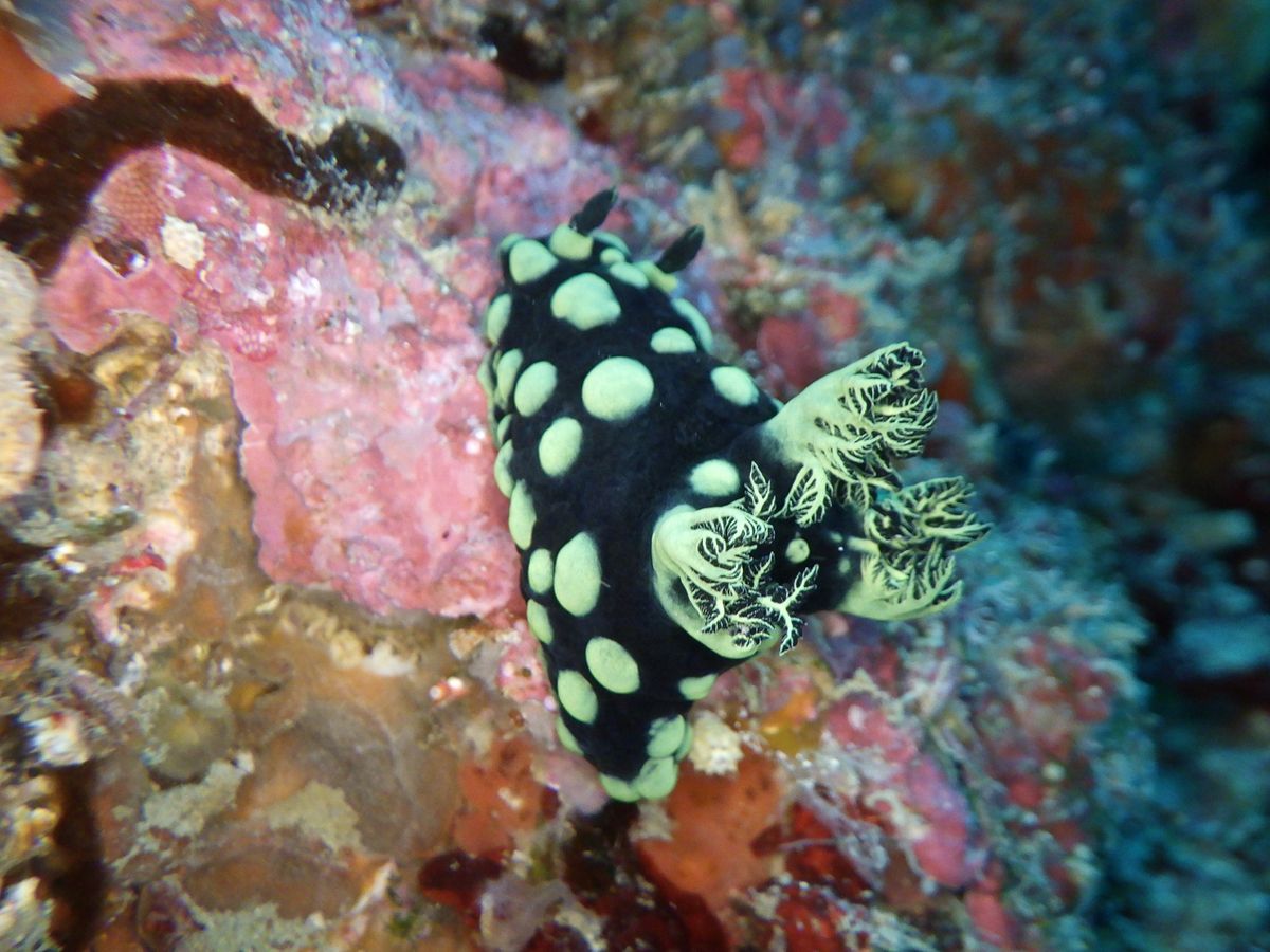 ダイビングは、3ポイントともそれぞれ個性的で、透明度は文句なし、サンゴ、魚群、砂地、ウミウシ、、色々全て素晴らしかったです。今回は15-20メートルくらいのところで泳がせていただきましたが、すぐドロップオフがあり-40mくらいだそうです。