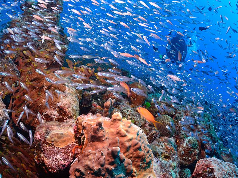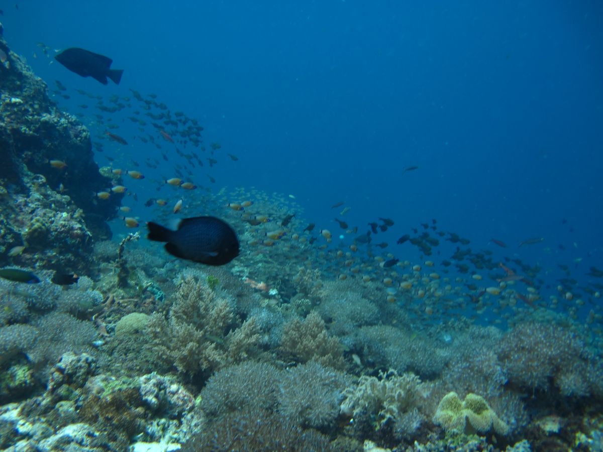 透明度、魚の数、珊瑚の種類は圧巻ですよ。また、大物に出会えるチャンスが増えます。