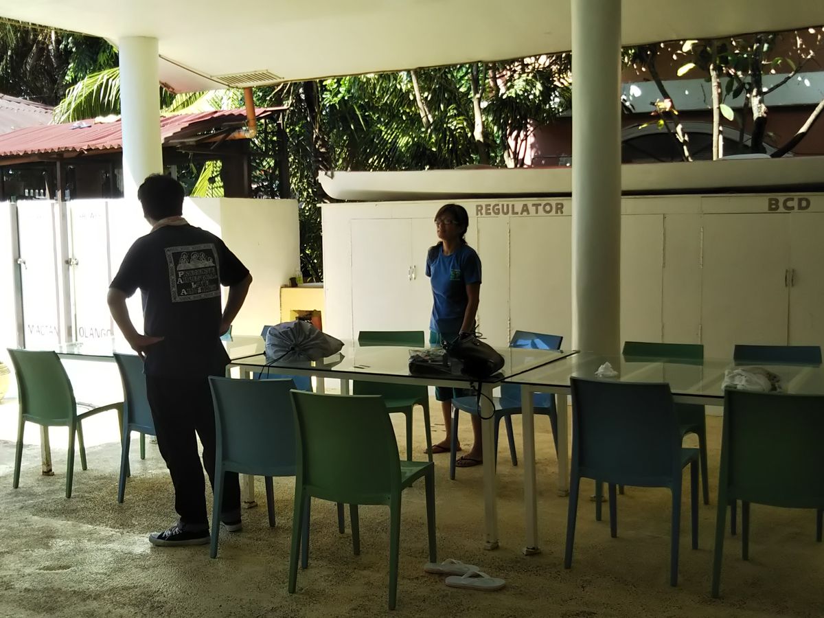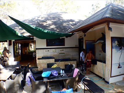 午後からのボートダイブ2本に参加しました。ダイビングの経験本数は20本程で、ライセンスはPADIアドバンスです。感想ですが、まず受付の方はとても対応が良く日本語も普通に話せる方だったので、英語に自信がない方でも大丈夫だと思います。ただ、ガイドは話せても片言の日本語だと思っていた方が良いです。
