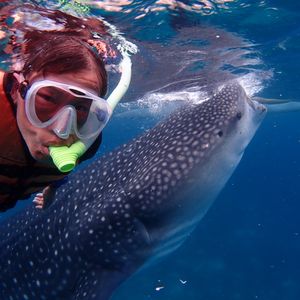 せっかくセブ島に行くので、ジンベイザメを見たいと思ってツアーに参加しました。当日は天気も良く水温も高かったので、躊躇なく海に入ることができました。ジンベイザメはすごく怖いのかと思っていたのですが、全くそんなことはなく、目の前をスイスイと泳いでいました。間近で見るジンベイザメは迫力満点で感動しました!あんなに大きいのに、目が小さくてとても可愛かったです。一緒に写真を撮ることもできて、とても良い思い出になりました。ガイドさんが丁寧に案内してくださったので、安心して楽しめました。セブ島に行くなら、おススメしたいツアーです。