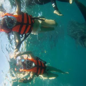 セブに行くことの目的がジンベイザメと泳ぐことだったのでのですごく楽しみにしていました!ツアー当日は朝の4時に車に乗り、約3時間かけて海へ行きました。道路が少しガタガタしますが、行きは早いので、帰りも泳ぎ疲れて寝ていたので苦では無かったです。ただ、椅子が硬かったので腰痛持ちの方はクッションなど持っていかれるといいと思います。海に着くとたくさんの人たちがいました。まず、自分達の荷物をロッカーに預け(50ペソ)、ツアーの注意事項を聞きました。そして、ツアーのグループでボートに乗り、少し出たところにジンベエザメがいました!海面からもジンベイザメがすぐ側を通り、大迫力でした!15分間でしたが、ジンベエザメがたくさんいて、常に目の前を行き来するような状態だったので、撮影のチャンスはたくさんありました。私達は自分のGoProを持っていたのでGoProプランを付けなかったのですが、ジンベイザメとの写真が欲しい方はGoProプランをつけた方が絶対に良いと思います!シュノーケリングで潜ることにいっぱいになって、写真を撮りましたが、ほとんどがぶれてしまいました。ガイドさんがサメが来たときに、合図をくれて、そのタイミングで潜れば、間近にジンベエを見ることができます!本当に楽しい時間でした!またセブに来たらもう一度行きたいと思います!