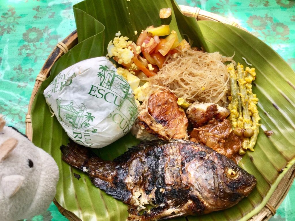 フィリピンには、伝統として手で食べる習慣があり、こちらではその形式で振る舞われています。