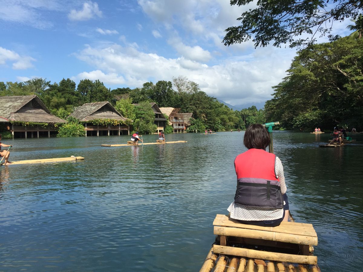 ココナッツプランテーションでは、一番の売りである滝の川床での昼食のフィリピン料理は混雑しており、ゆっくり食べたい方は陸上のテーブルがオススメです。ウォーターパークにあるバンブーボート(時間無制限→疲れるまで(≧∀≦))は是非、皆さん漕いでくださいませ。川面に揺られてリフレッシュできます!