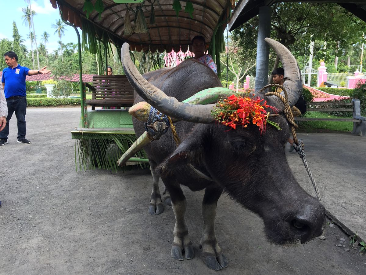 雨季ど真ん中の8月に訪問しました。マニラ出発時は大雨でしたがガイドさんの言う通り郊外は天気も良く傘なしで観光できました。到着後、園内は水牛車で往復の移動。移動中はギターの伴奏で日本の曲など歌ってくれてとても贅沢な時間を過ごせました。博物館には教会グッズのコレクションがありすばらしかったです。靴を預けて滝つぼでフィリピン料理のランチビュッフェをいただきますが鶏肉や魚のグリルはおいしかったです。イカダにも乗りましたが食後の良い運動になります。お土産でここで作られているクッキーを買いましたがおいしかったです。残念ながら伝統舞踊を見ることができなかったので4★にさせていただきます。