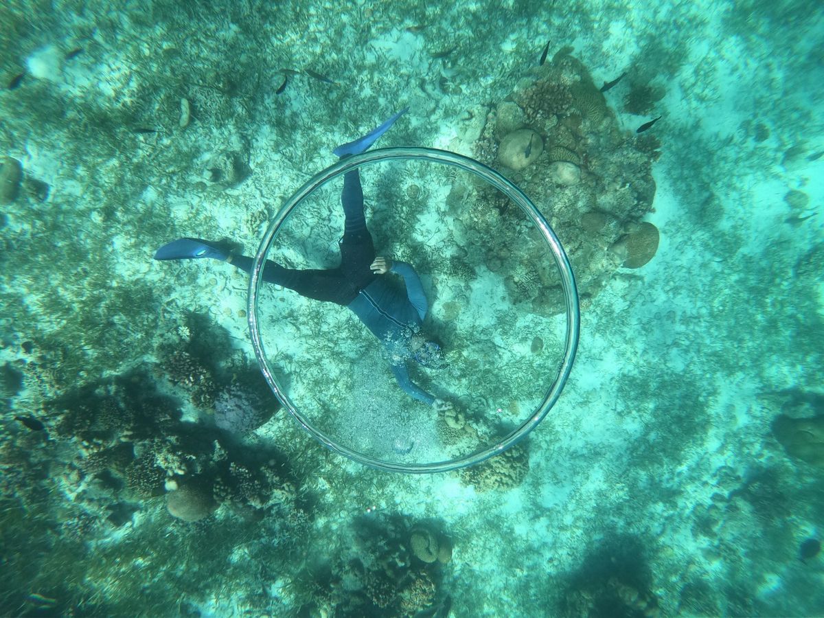 ヒルトゥガン島のシュノーケリングは水深2〜5mくらいのところで、素潜りが好きな私にとっては最高の場所でした。深い海が不安な方でもライフジャケットの貸し出し+スタッフの補助で全く問題ないと思います。