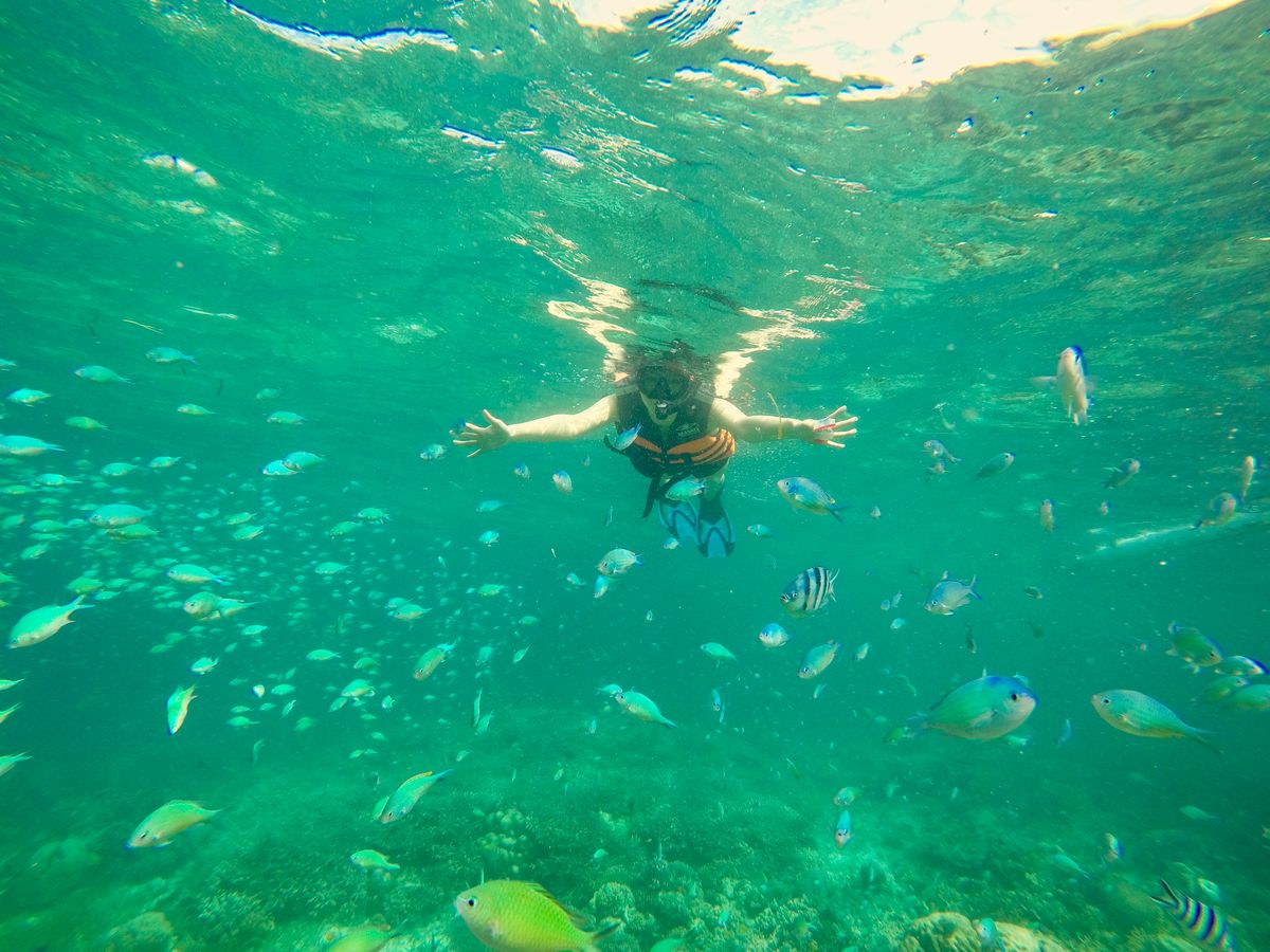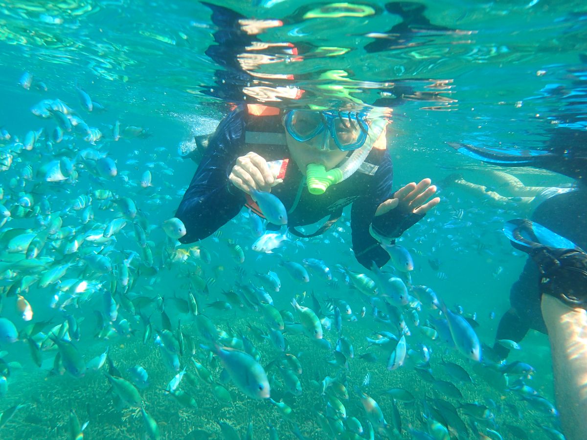 透き通った青い海でのシュノーケリングは、まるで魚になった気分を味わえるものでした。海の中は、沢山の魚と美しい珊瑚が広がっており、感動すること間違いなしです。