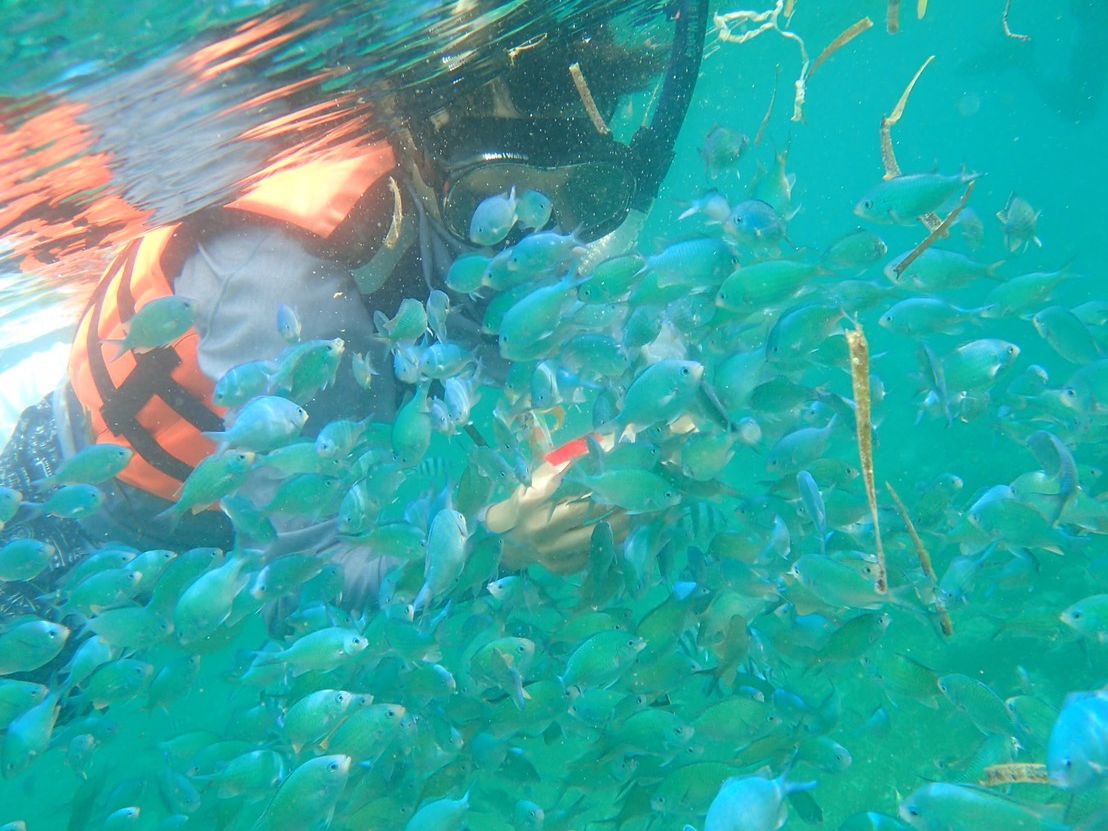 水の透明度はそこまでという印象でしたが、魚がとにかくいっぱいいたので大満足でした。お菓子をばらまくと大量の魚がよってきてちょっとこわいぐらいでした。