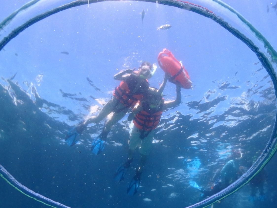 ヒルトゥガン島の周囲でのスノーケリングで、透明度も高く、魚もたくさんいました。時間が経つにつれ、ほかのツアーの船も来て人でごったがえしましたが、水中写真は、とても綺麗に撮れていて、帰国後保存し、とてもよい思い出になりました。とても良いツアーだと思います。