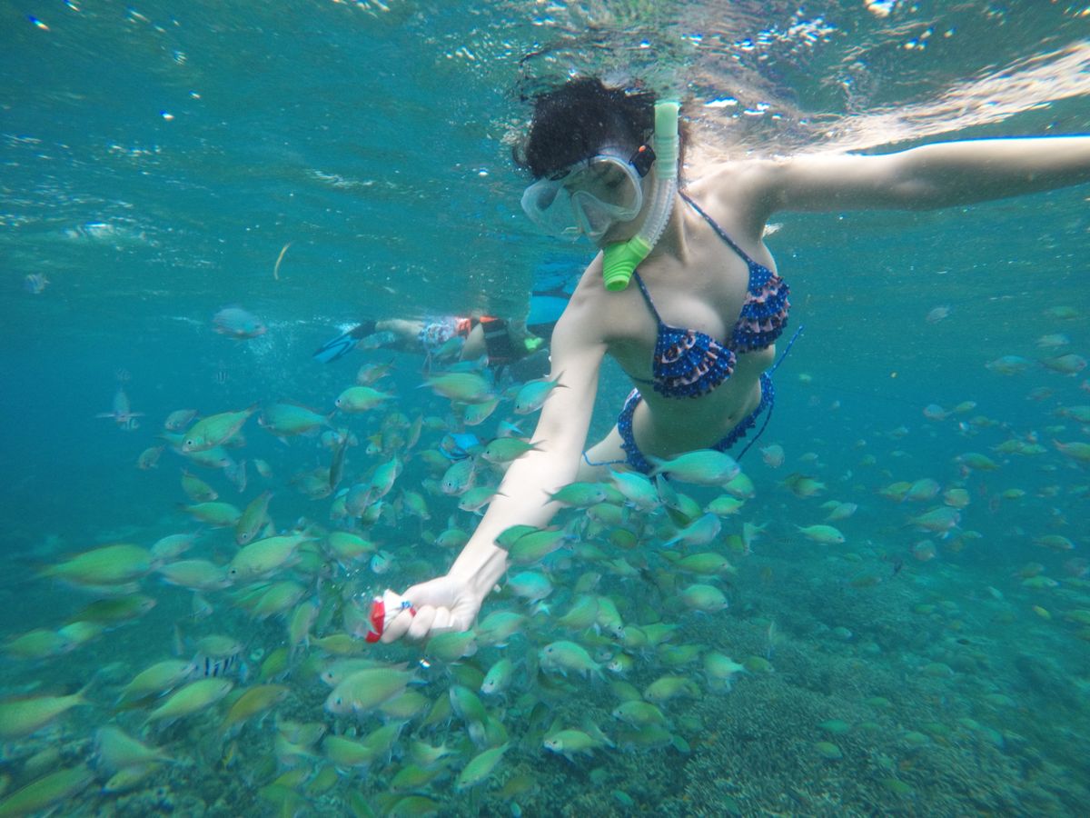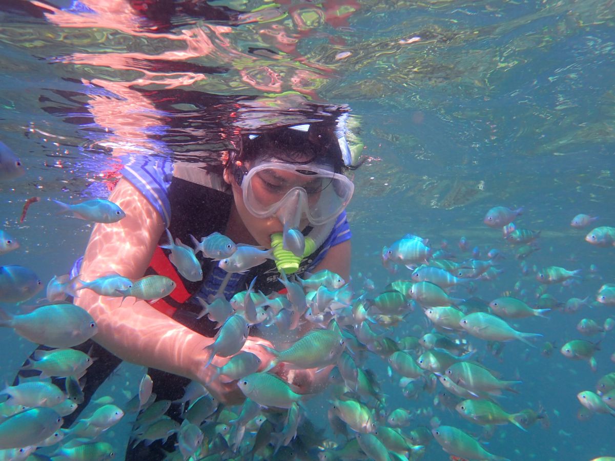 どちらの島でも魚にあげるエサをもらえて、特にナルスアン島ではたくさん魚がいて、エサをあげるとめちゃくちゃ集まってきてビックリしましたが楽しかったです。