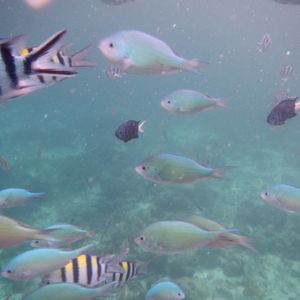 友人と娘の3人で参加しました。魚が想像以上にたくさんいて、感動しました。ガイドさんも親切で、潜って魚の写真を撮ってきてくださいました。天気は薄曇りで、暑過ぎずちょうどよかったです。ナルスワン島ではランチの後のんびり過ごしました。充実した1日が過ごせました!